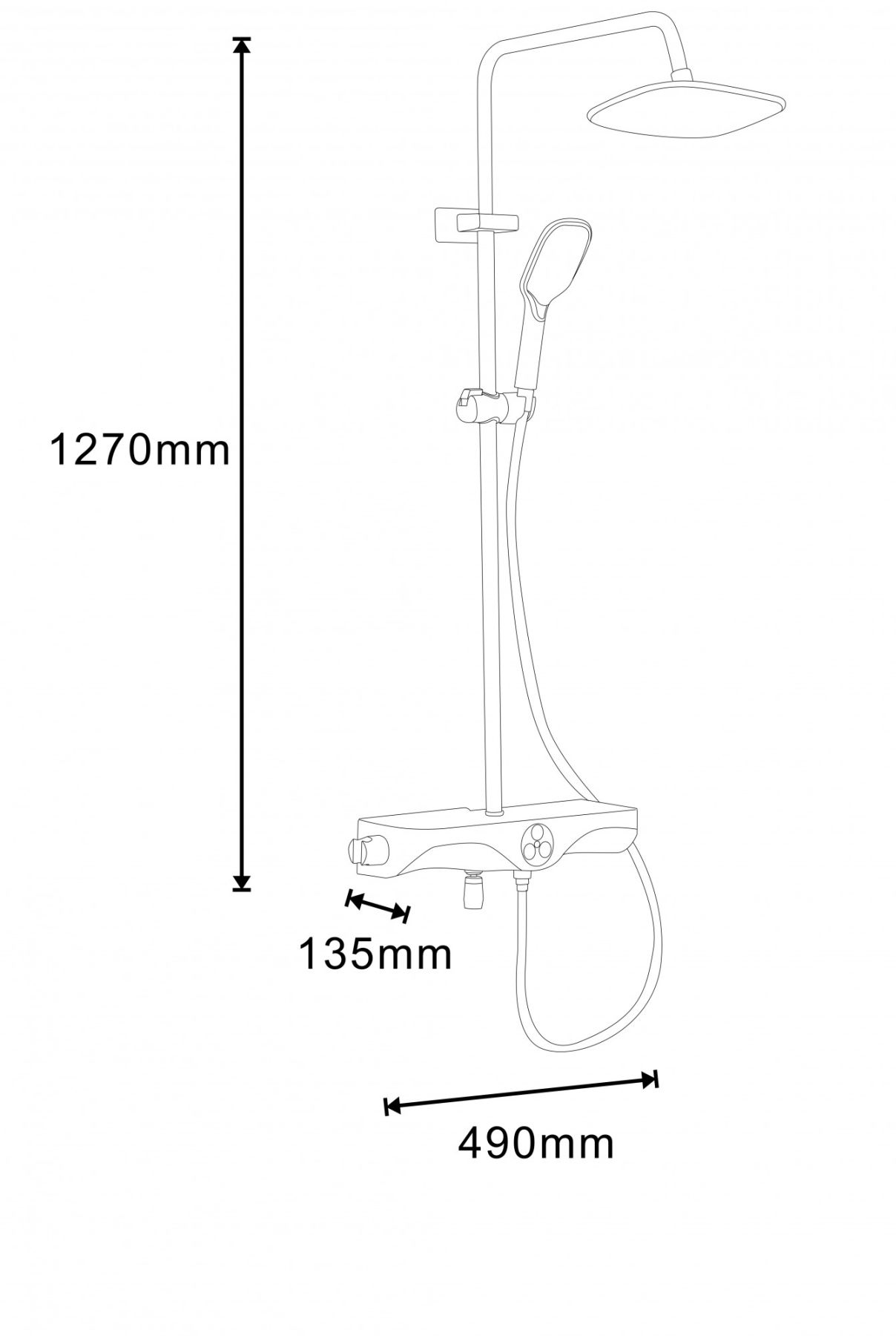 Размер верхнего душа, см:225