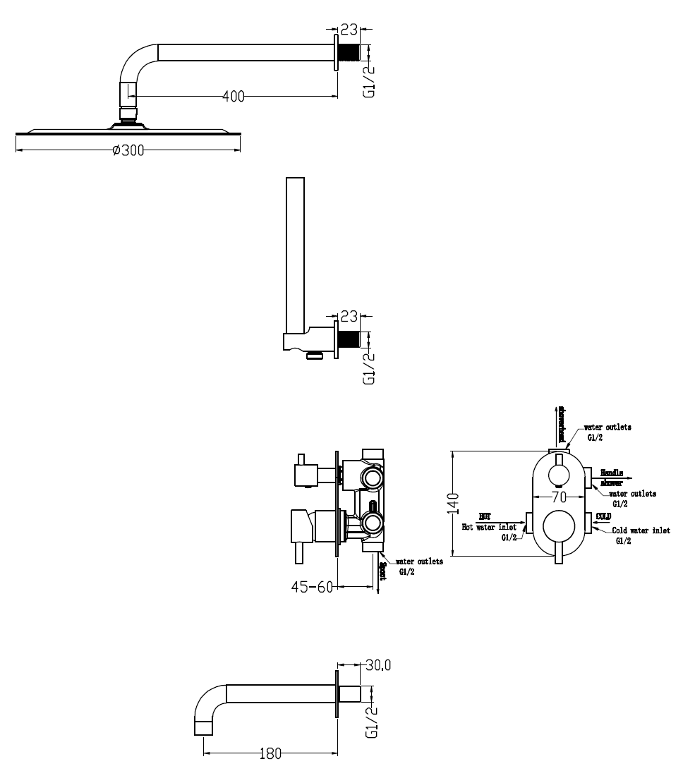 • Размер верхнего душа, см: 30