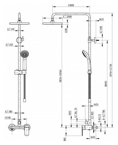 - Верхний душ, диаметр 200 мм