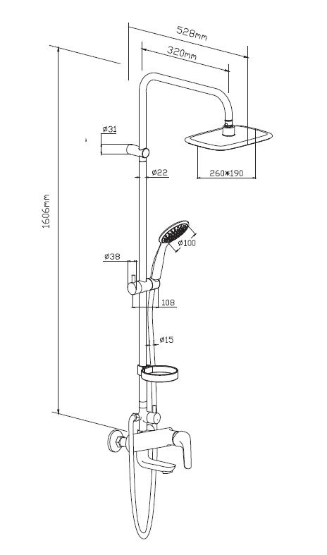 - Размер верхнего душа, см:26