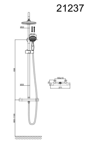 Размер верхнего душа, см:22