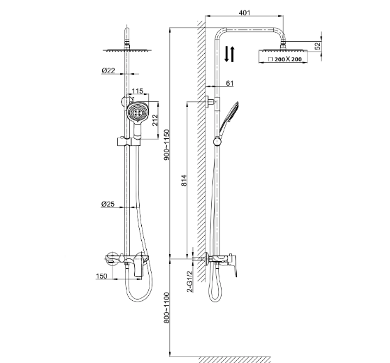 Размер верхнего душа, см:25