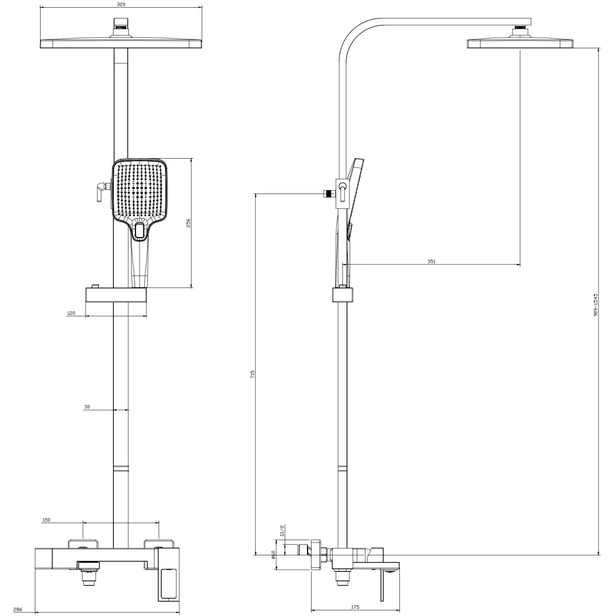 Душевая система DQ Dortmund DA1713705 320x210 мм, со смесителем, черный матовый купить