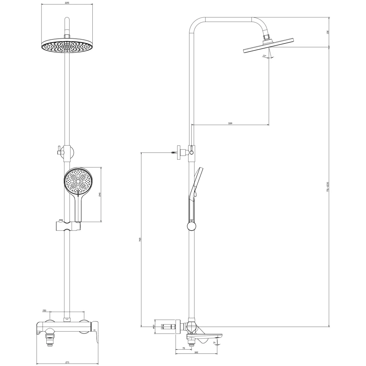 Душевая система DQ Hamburg DA1743701 225 мм, со смесителем, хром купить