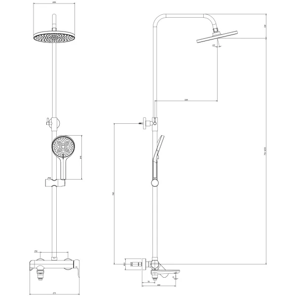 Тип:душевая система со смесителем