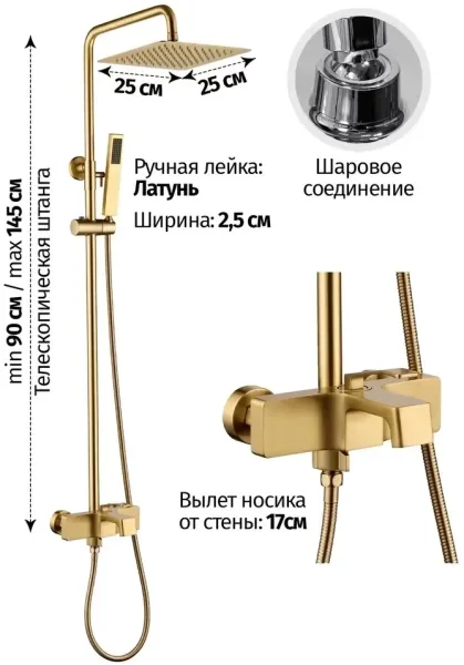 Душевая система Grocenberg GB7090 Матовое золото купить