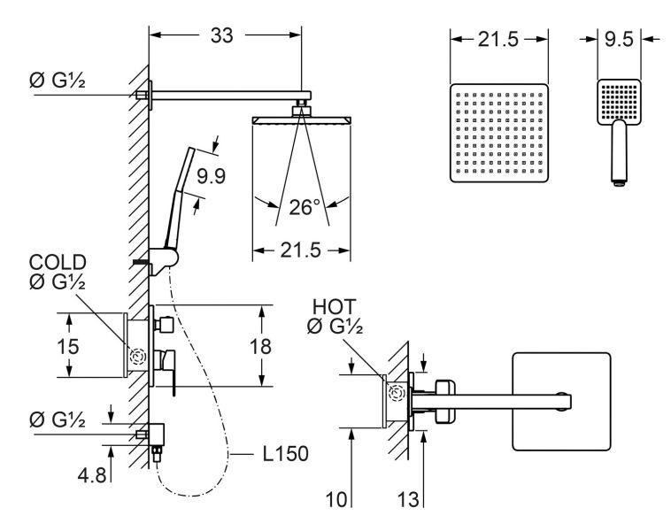 Размер верхнего душа, см 21,5