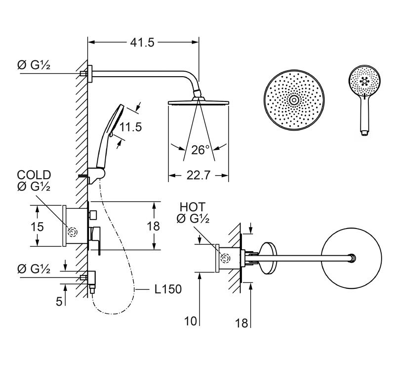 Комплектация - ручной душ, верхний душ