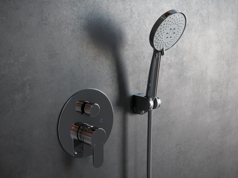 Смеситель скрытого монтажа, переключатель на 2 положения, верхний душ, ручной душ, душевой шланг, держатель лейки.