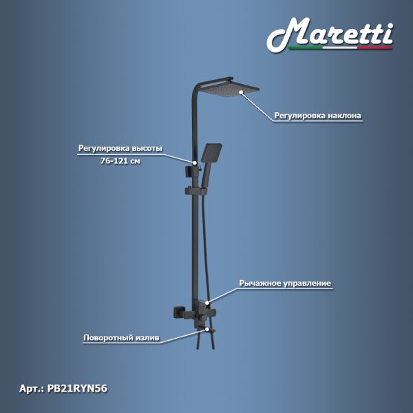 Душевая система Maretti Project Black PB21RYN56, черный купить