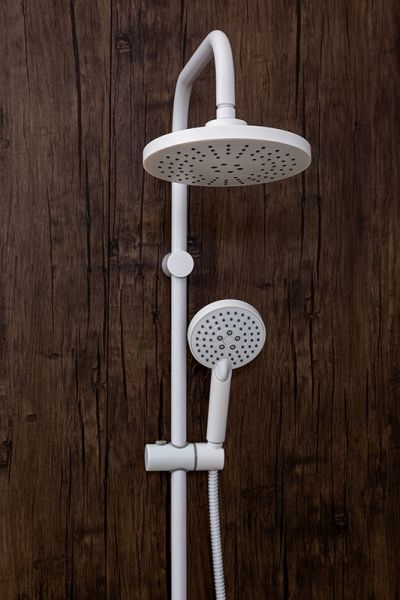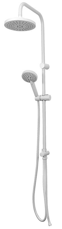 Душевая система в цвете белый глянец: верхний душ (d200 мм) создаёт эффект тропического дождя, что дарит непередаваемые эмоции во время ежедневных банных процедур. Ручной душ 100 мм (3 режима) на гибком полутораметровом шланге (в металлической оплетке) с защитой от перекручивания. Держатели верхнего и ручного душа с регулировкой угла наклона, штанга 970 мм. Подвижные детали отличаются долговечностью. Фиксируется душевая система непосредственно на стене, что позволяет рационально использовать ограниченное пространство ванной комнаты.