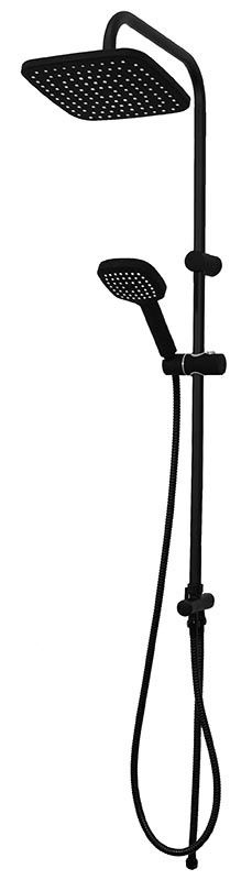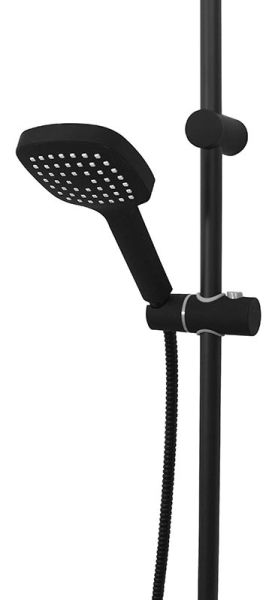Душевая система в цвете черный матовый: верхний душ (230х230 мм) создаёт эффект тропического дождя, что дарит непередаваемые эмоции во время ежедневных банных процедур. Ручной душ 120 мм (1 режим) на гибком полутораметровом шланге (в металлической оплетке) с защитой от перекручивания. Держатели верхнего и ручного душа с регулировкой угла наклона, штанга 970 мм. Подвижные детали отличаются долговечностью. Фиксируется душевая система непосредственно на стене, что позволяет рационально использовать ограниченное пространство ванной комнаты. Модное на сегодняшний день покрытие чёрного цвета, за которым просто ухаживать мягкой салфеткой, получено порошковой окраской с многоступенчатой системой подготовки и высокотемпературной обработкой.