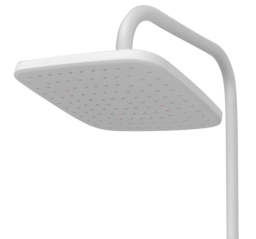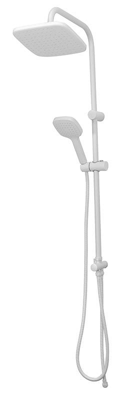 Душевая система в цвете белый глянец: верхний душ (230х230 мм) создаёт эффект тропического дождя, что дарит непередаваемые эмоции во время ежедневных банных процедур. Ручной душ 120 мм (1 режим) на гибком полутораметровом шланге (в металлической оплетке) с защитой от перекручивания. Держатели верхнего и ручного душа с регулировкой угла наклона, штанга 970 мм. Подвижные детали отличаются долговечностью. Фиксируется душевая система непосредственно на стене, что позволяет рационально использовать ограниченное пространство ванной комнаты.