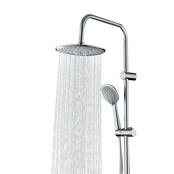 Душевая система в цвете глянцевый хром: верхний душ (d230 мм) создаёт эффект тропического дождя, что дарит непередаваемые эмоции во время ежедневных банных процедур. Ручной душ d110 мм (3 режима) на гибком полутораметровом шланге (в металлической оплетке) с защитой от перекручивания. Держатели верхнего и ручного душа с регулировкой угла наклона, штанга 970 мм. с подвижным держателем (возможность установки в старые отверстия). В комплекте также переключатель потоков и пластиковая мыльница. Подвижные детали отличаются долговечностью. Форсунки верхнего и ручного душа с функцией легкого очищения от известкового налета.