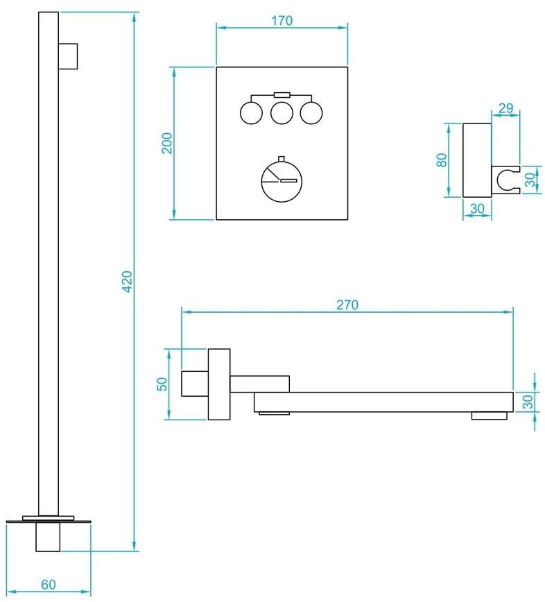 - Шланг ручного душа – нержавеющая сталь, длина 1.5 м