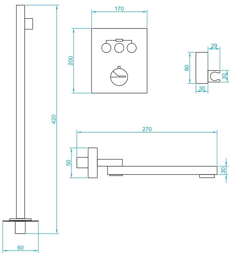 - Шланг ручного душа – нержавеющая сталь, длина 1.5 м