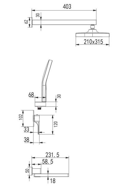 Душевая система встраиваемая Rose R1035H, черный.Монтаж: внутренний (скрытый).Стилистика дизайна: современный стиль.Управление: рычажное.Размер верхнего душа: 31,5x21.Форма верхнего душа: прямоугольная.