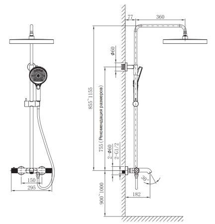 Размер верхнего душа, см:32