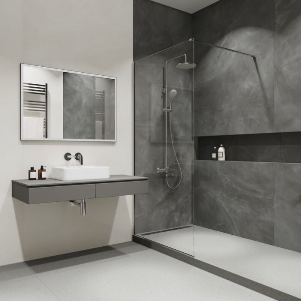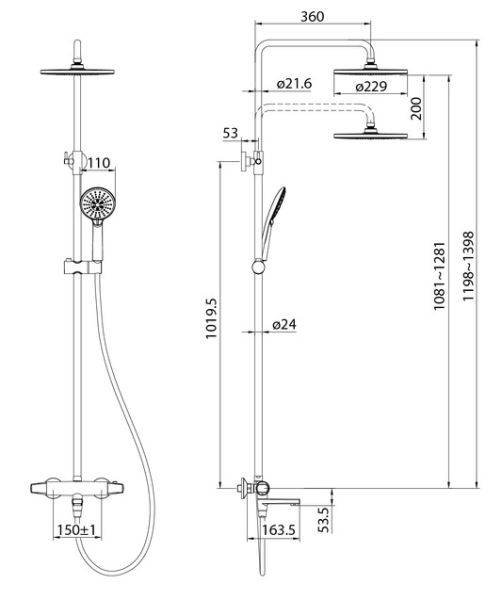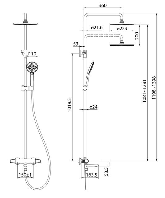 Регулируемая высота стойки (1,2-1,4 м) позволяет с комфортом принимать душ даже самым высоким.