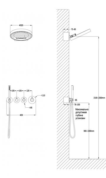 Размер верхнего душа, см:32