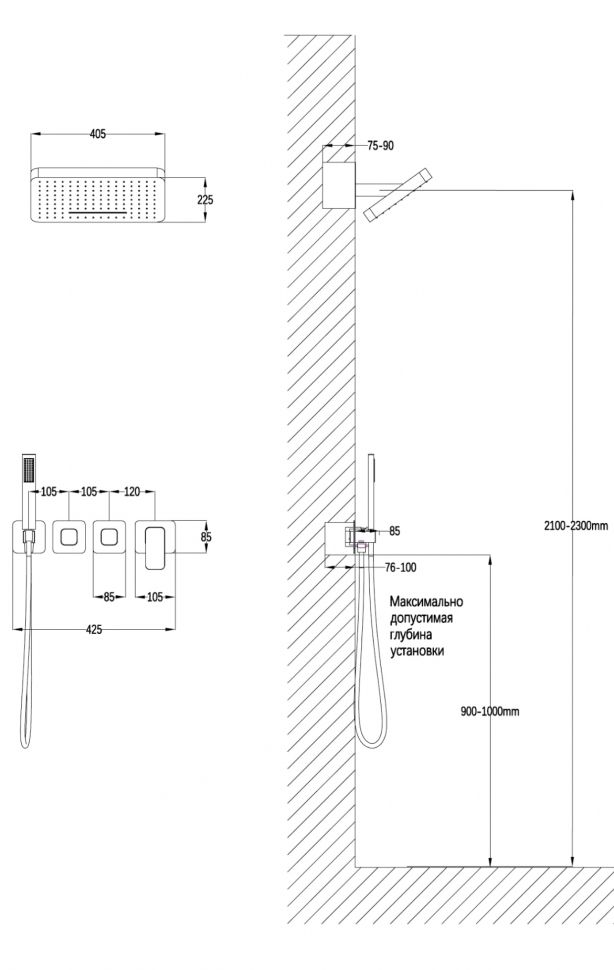 Размер верхнего душа, см:40