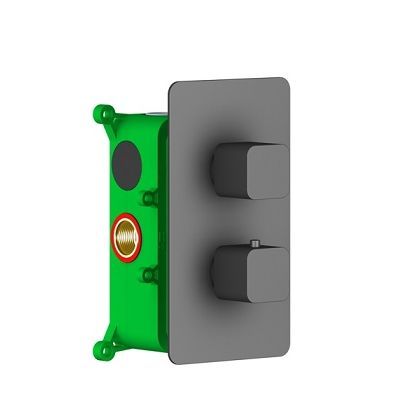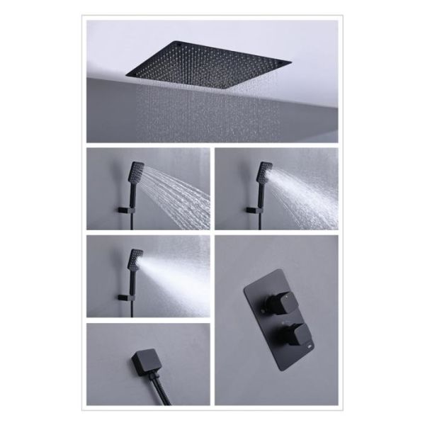 - Душевая система скрытого монтажа, с термостатом с квадратной лейкой (латунь) в стиле модерн