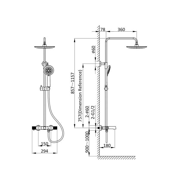 Душевая система Vincea Desire VSFS-1D1TGM термостатическая вороненая стальСерия: