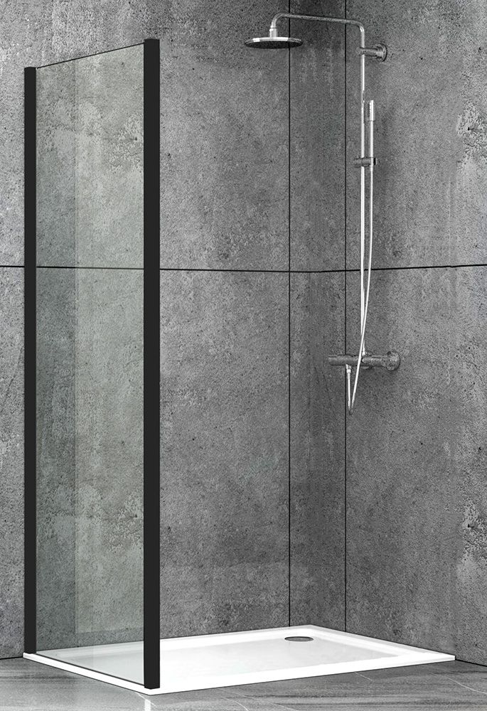 Неподвижная черная боковая стенка 90 см для душевого ограждения, может быть использована как перегородка, прозрачное стекло 6 мм.