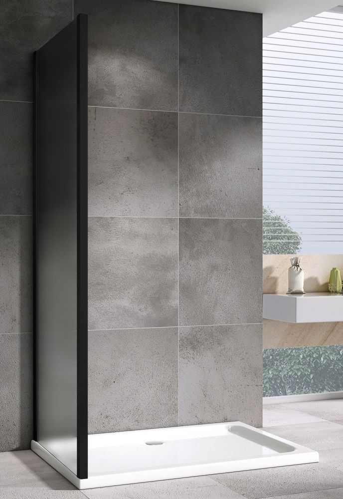 Размер (Ш*В): 800*1950 мм.Ориентация: универсальная.Толщина стекла: 6 мм.Профиль: черный.Стекло: матовое.