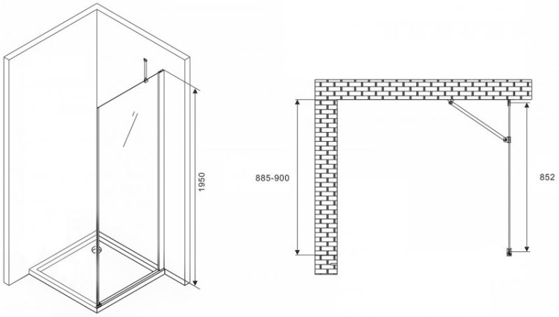 Размер (Ш*В): 900*1950 мм.Ориентация: универсальная.Толщина стекла: 6 мм.Профиль: хром.Стекло: прозрачное.