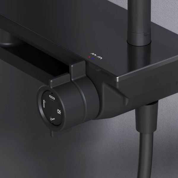 Душевая стойка Am.Pm Gem F0790722 с ванно-душевым смесителем-полкой чёрный купить