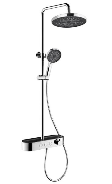 состоит из: верхний душ, ручной душ, смеситель для ванны, штанга для душа, держатель для душа; верхний душ 260 1jet; размер душевого диска: 260 мм, тип струи: Rain; душевая лейка 126 мм, 3 режима струи; каскадный излив; шарнирное соединение: регулируемый угол верхнего душа;длина держателя для душа: 400 мм;держатель для ручного душа регулируемый по высоте; поворотный держатель для душа; вид монтажа: внешний монтаж; соединительная резьба G ½; межосевое подключение 150 мм ± 12 мм; телескопическая штанга; подъемная труба может быть укорочена по высоте 100-450 мм; шланг 1500 мм; 2 года гарантии.