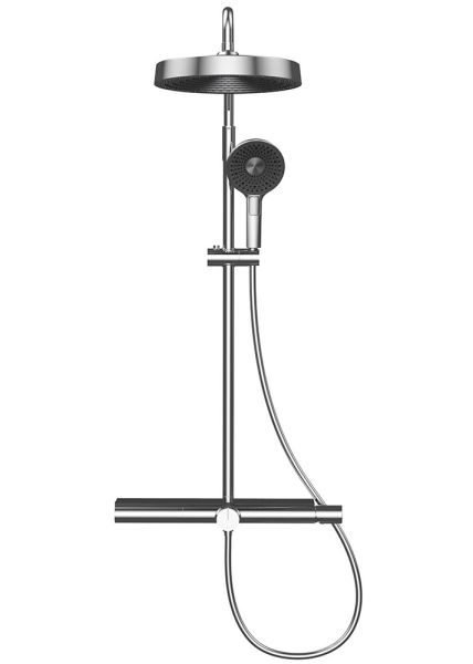 состоит из: верхний душ, ручной душ, смеситель для ванны, штанга для душа, держатель для душа; верхний душ 300 1jet; размер душевого диска: 300 мм, тип струи: Rain; душевая лейка 130 мм, 3 режима струи; съемный аэратор; шарнирное соединение: регулируемый угол верхнего душа;длина держателя для душа: 400 мм;держатель для ручного душа регулируемый по высоте; поворотный держатель для душа; вид монтажа: внешний монтаж; соединительная резьба G ½; межосевое подключение 150 мм ± 12 мм; телескопическая штанга; подъемная труба может быть укорочена по высоте 90-440 мм; полка из закаленного стекла; шланг 1500 мм; 2 года гарантии.