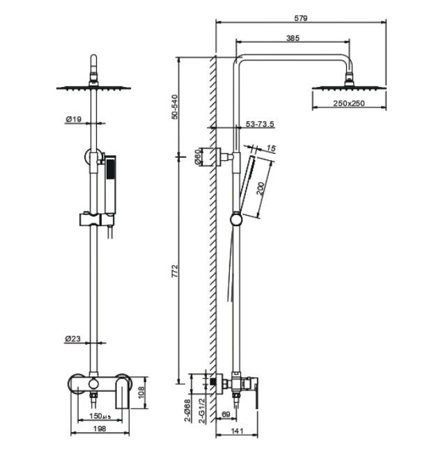 • регулируемая душевая штанга из нержавеющей стали, выдвигающаяся до 1312 мм в высоту