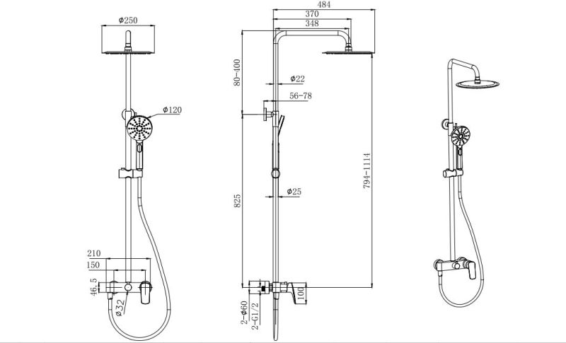 Размер верхнего душа, см:25