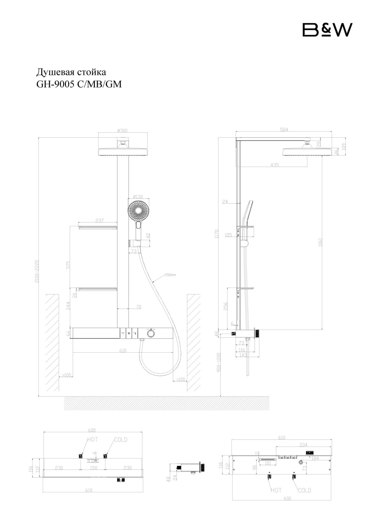 Представляем Вашему вниманию душевую стойку GH-9005 бренда Black&White коллекции GRAVITY, которая станет идеальным дополнением для любого интерьера. Размеры этой модели составляют 610х1221х584 мм. Корпус сделан из латуни, оксидированного алюминия и прочного закаленного стекла. Хромированное покрытие обеспечивает превосходный внешний вид и долговечность.