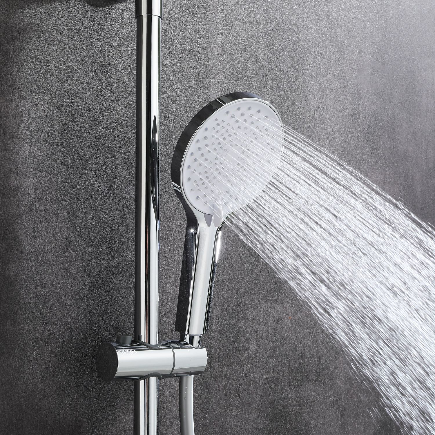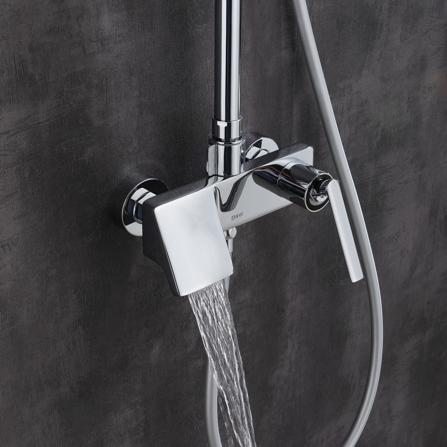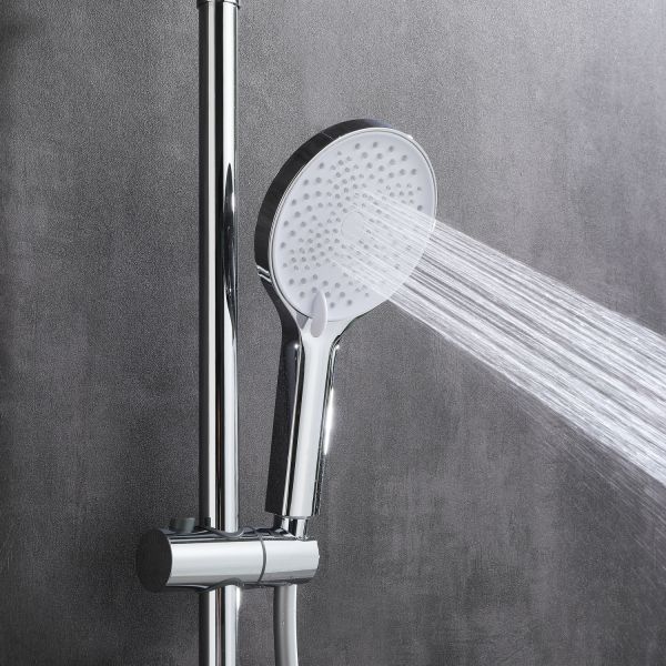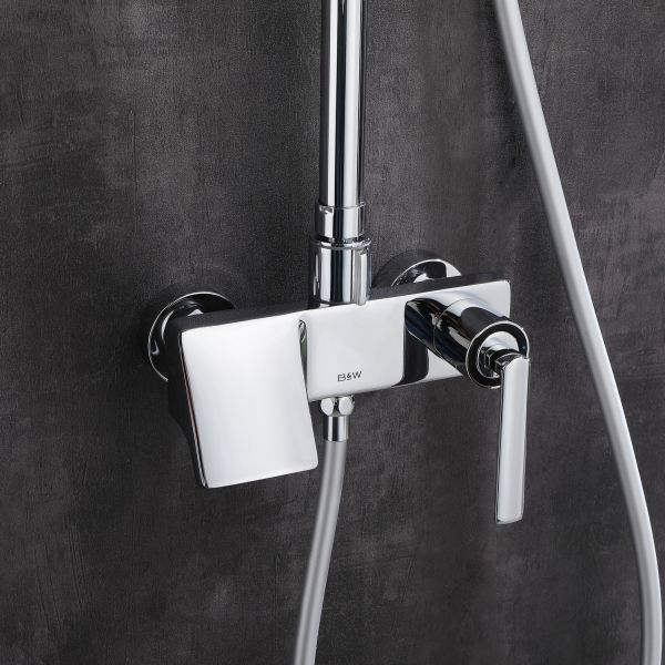 Душевая стойка в цвете глянцевый хром датского производителя Black&White. Корпус изделия произведен из сантехнической латуни – безопасного и коррозиестойкого сплава.Управление потоками и температурой воды выполняет керамический картридж повышенной пропускной способности. Из потребителей на комплекте установлен верхний душ, ручной душ, а также на верхней части корпуса под углом расположен каскадный излив для набора емкостей. Для выбора режима работы у основания стойки расположен поворотный дивертор выполненный в виде кольца с дополнительным выступом для удобства использования мокрыми руками.