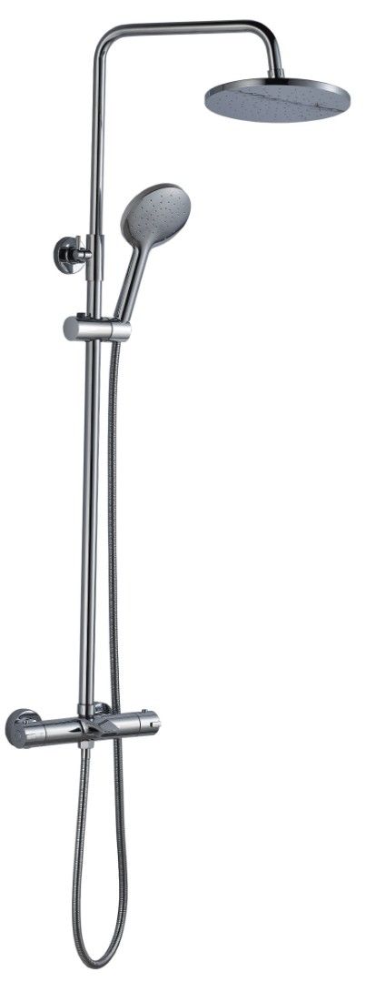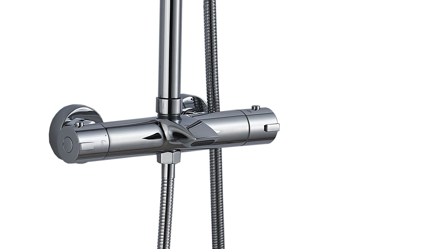 Освежающий или расслабляющий душ помогает нам отдохнуть и отвлечься от повседневной суеты. Однако бывает так, что при нестабильном напоре в трубах, происходит неожиданное изменение температуры воды в душе. И если поток холодной воды может стать просто неприятностью, то горячая вода может быть даже опасна для здоровья.Душевая стойка с встроенным термостатом — это устройство, которое оценят любители комфортных водных процедур. Благодаря функционированию терморегулятора, при изменении напора - температура воды остается неизменной. Система автоматически добавляет контрастную воду, при любых изменениях температуры воды, что делает их практически незаметными.Помимо стильного дизайна, душевая стойка с термостатом обладает следующими преимуществами:- Безопасность. В случае повышения температуры воды выше допустимых значений, благодаря встроенным предохранителям, происходит автоматическая блокировка потока. Такая технология позволяет защитить от ожогов при внезапном отключении холодной воды.- Комфорт. Стойка с термостатом удобна в эксплуатации: достаточно один раз отрегулировать оптимальный температурный режим и напор воды, чтобы в дальнейшем заданные показатели оставались неизменными и устройство автоматически регулировало поток.- Экономия. Использование душевой стойки с термостатом позволяет экономить расход воды, так как вода подается сразу с комфортной температурой и не тратится в процессе её настройки.Внимание! Производитель оставляет за собой право вносить изменения в конструкцию и комплектацию моделей без предварительного уведомления!