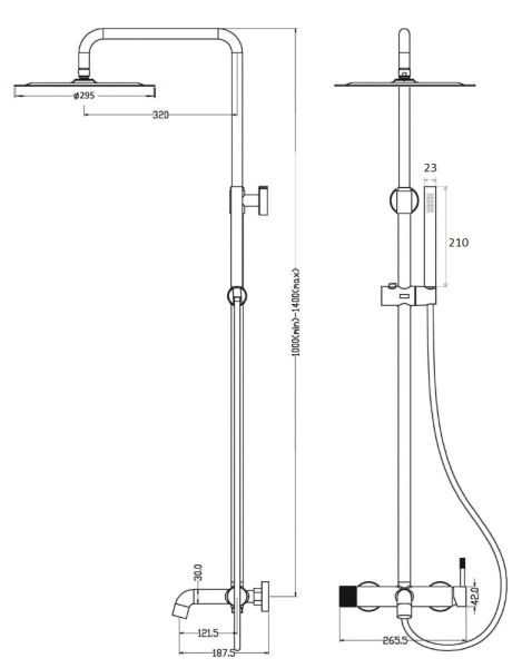 - Душевая лейка: 2.3 x 21 см