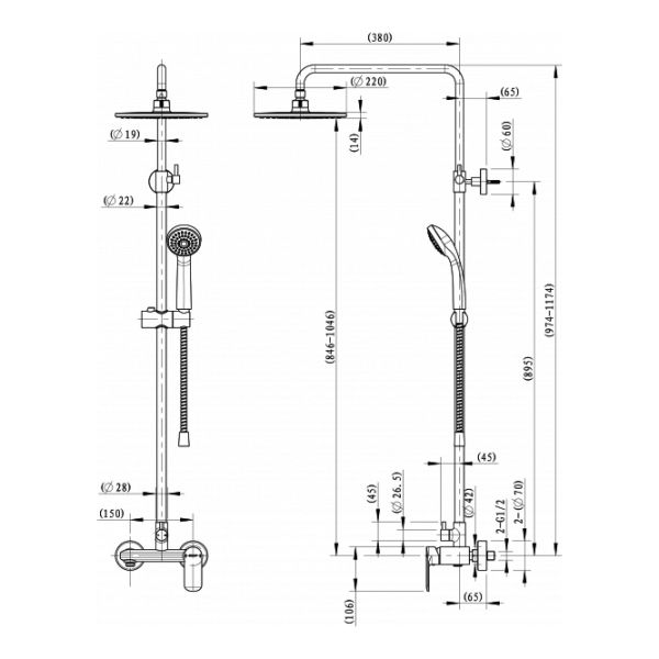 Душевая система Bravat Opal С F9125183CP-A1-RUS со смесителем для душа. Верхний душ круглой формы, полностью хромированный. Картридж: Kerox. Шланг 1,5 м. PVC. Верхний душ: 20 см ABS-пластик хром. Ручной душ: 1 режим. Штанга: латунь, диаметр 22 мм.