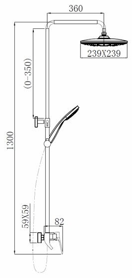 - квадратная лейка верхнего душа 239х239 мм, на шаровом шарнире, угол наклона 15 градусов