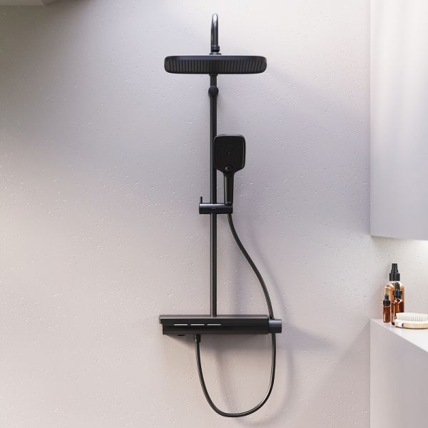 Душевая стойка Damixa Gala 953760300 с термостатом Черная матоваяМягкие геометричные формы, трендовое черное покрытие и солидное датское качество – идеальное сочетание для современной ванной комнаты. Простая и минималистичная на первый взгляд, душевая система Gala чрезвычайно функциональна и удовлетворит даже самого искушенного пользователя. Максимальная безопасность: термостатический картридж 35 мм обеспечивает точную настройку температуры и напора воды. Благодаря телескопической штанге с диапазоном регулировки в 400 мм водные процедуры будут одинаково комфортны абсолютно для всех членов семьи. Непревзойдённый комфорт и удобство: благодаря стильной полочке из ударопрочного закаленного стекла, вы можете хранить все необходимые вещи под рукой. Настоящее SPA прямо у вас дома: наслаждайтесь увеличенным размер тропической лейки с регулируемым углом наклона и 3-мя режимами ручного душа. Возможность включения 2-х или 3-х режимов одновременно сделает ваши ежедневные ритуалы незабываемыми. Простота и минимализм во всем: переключайте потоки воды между изливом, ручной и тропической лейкой нажатием всего одной кнопки. Специальное PVD-покрытие гарантирует чрезвычайную прочность душевой системы. Матово-черная поверхность не выцветает с годами и устойчива к механическим повреждениям, загрязнениям и отпечаткам пальцев.