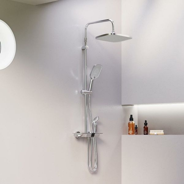 Душевая стойка Damixa Gala 953770000 с термостатом ХромДушевая система Gala обладает мягкими геометричными формами, которые идеально впишутся в современную ванную комнату. Минималистичная и стильная, она отличается самым широким функционалом в линейке и удовлетворит даже искушенного пользователя. Максимальная безопасность и технологичность: термостатический картридж 35 мм обеспечивает точную настройку температуры и напора воды. Душевая система оснащена автоматическим дисплеем, отражающим температуру воды в реальном времени. Непревзойдённый комфорт и удобство: тонкий латунный корпус выполнен в виде компактной полочки, где вы можете хранить все необходимые вещи. Благодаря телескопической штанге с диапазоном регулировки в 400 мм водные процедуры будут одинаково комфортны абсолютно для всех членов семьи. Простота и минимализм во всем: переключайте потоки воды между изливом, гигиеническим душем, ручной и тропической лейкой, а также плавно управляйте напором воды нажатием нескольких клавиш. Настоящее SPA прямо у вас дома: наслаждайтесь увеличенным размер тропической лейки с регулируемым углом наклона и 3-мя режимами ручного душа. Возможность включения 2-х или 3-х режимов одновременно сделает ваши ежедневные ритуалы незабываемыми.