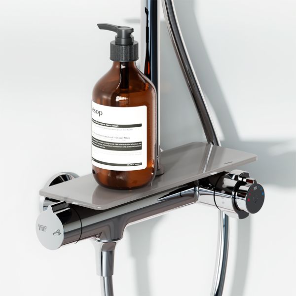 Душевая стойка Damixa Jupiter 977710300 хромСтильный и лаконичный дизайн душевой системы Jupiter прекрасно подойдет как для классической так и для современной ванной комнаты. Максимальная безопасность: термостатический картридж 35 мм обеспечивает точную настройку температуры и напора воды. Благодаря телескопической штанге с диапазоном регулировки 400 мм ежедневные процедуры будут одинаково комфортны для людей любого роста. Большое количество форсунок с микроотверстиями которые распределяют поток мягкими равномерными струями обеспечит вам расслабляющий эффект настоящего домашнего SPA. Переключайте потоки воды между ручной и тропической лейками плавным поворотом дивертора. Угол наклона тропической лейки можно регулировать. Инновационное покрытие High Gloss надежно защищает хромовую поверхность душевой системы от мелких повреждений и сохраняет ювелирный блеск на долгие годы.
