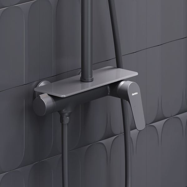 Душевая стойка Damixa Jupiter 977780300 Черная матоваяСтильный и лаконичный дизайн душевой системы Jupiter прекрасно подойдет как для классической, так и для современной ванной комнаты. Благодаря телескопической штанге с диапазоном регулировки в 400 мм водные процедуры будут одинаково комфортны абсолютно для всех членов семьи. Непревзойдённый комфорт и удобство: смеситель выполнен в виде компактной полочки из закаленного стекла, где вы можете хранить все необходимые вещи. Встроенный крючок для мочалки также станет приятным дополнением. Благодаря большому