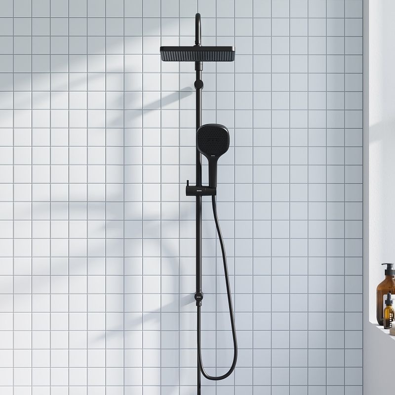 Душевая стойка Damixa Merkur 940000300 Черная матоваяЧистые геометричные линии душевой системы Merkur в сочетании с черным матовым покрытием идеально впишутся в интерьер современной ванной комнаты в скандинавском стиле. Несмотря на минималистичный дизайн, душевые системы этой серии отличаются широким функционалом и необычайной эргономичностью. Настоящее SPA прямо у вас дома: увеличенный размер тропической лейки с регулируемым углом наклона и 3 режима ручного душа сделают ваши ежедневные ритуалы незабываемыми. Благодаря телескопической штанге с диапазоном регулировки в 400 мм водные процедуры будут одинаково комфортны абсолютно для всех членов семьи. Простота и минимализм во всем: переключайте потоки воды между ручной и тропической лейкой всего одним нажатием. Благодаря функции очистки резиновых форсунок Rub&Clean поддерживать чистоту стало еще проще. Специальное PVD-покрытие гарантирует чрезвычайную прочность душевой системы. Матово-черная поверхность не выцветает с годами и устойчива к механическим повреждениям, загрязнениям и отпечаткам пальцев.
