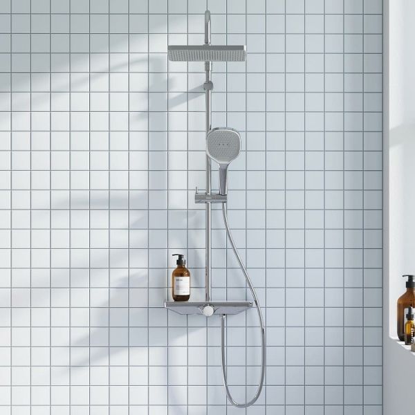 Душевая стойка Damixa Merkur 940730000 ХромЧистые геометричные линии душевой системы Merkur идеально впишутся в интерьер современной ванной комнаты в скандинавском стиле. Несмотря на минималистичный дизайн, душевые системы этой серии отличаются широким функционалом и необычайной эргономичностью. Продуманные детали: корпус смесителя выполнен в виде удобной полочки из закаленного стекла, на которой можно разместить необходимые под рукой вещи. Невидимый излив совмещает в себе эстетику и удобство. Простое и интуитивное управление: регулируйте температуру воды и переключайте потоки между изливом, ручной и верхней лейкой плавным поворотом двухуровневой ручки. Настоящее SPA прямо у вас дома: увеличенный размер тропической лейки с регулируемым углом наклона (220 мм) и 3 режима ручного душа сделают ваши ежедневные ритуалы незабываемыми. Благодаря телескопической штанге с диапазоном регулировки в 400 мм водные процедуры будут одинаково комфортны абсолютно для всех членов семьи. Инновационное покрытие High Gloss надежно защищает хромовую поверхность душевой системы от мелких повреждений и сохраняет ювелирный блеск на долгие годы.