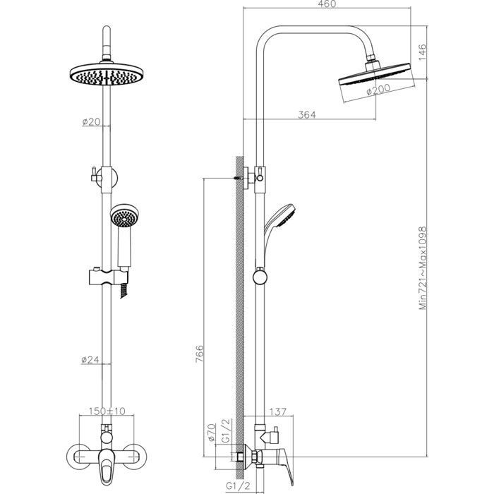 Душевая стойка Decoroom хром DR21070 купить
