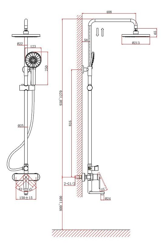 Размер верхнего душа, см:21