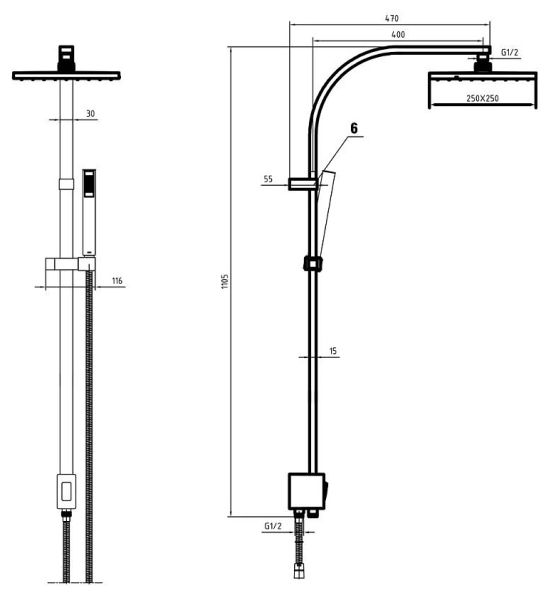 Душевая стойка без смесителя E.C.A используется в ванных комнатах. Модель оснащена квадратным верхним душем и прямоугольной лейкой. Изделие выполнено из латуни, которая отличается прочностью, долговечностью и устойчивостью к перепадам температуры.Дополнительные характеристики: